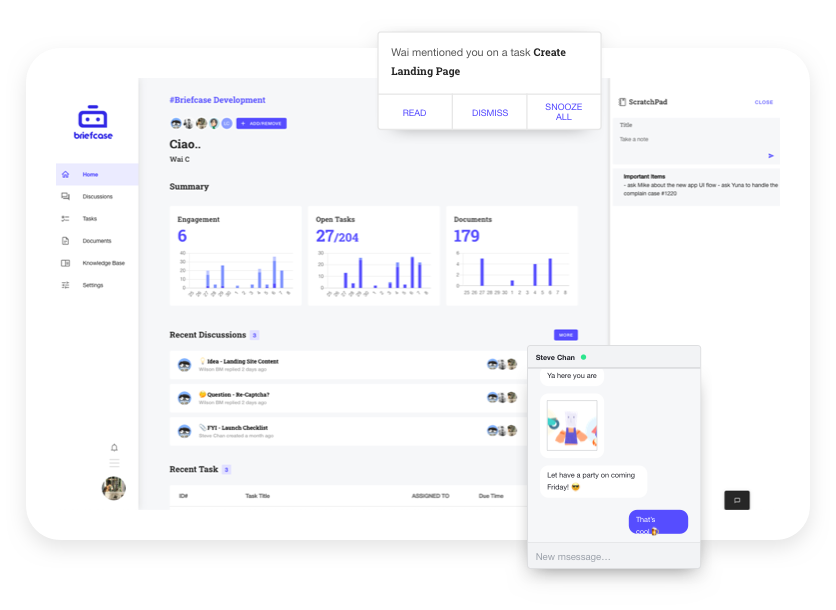 Need to quickly chat with your colleagues or client? Group Chat? Sharing links / files? We have you covered.